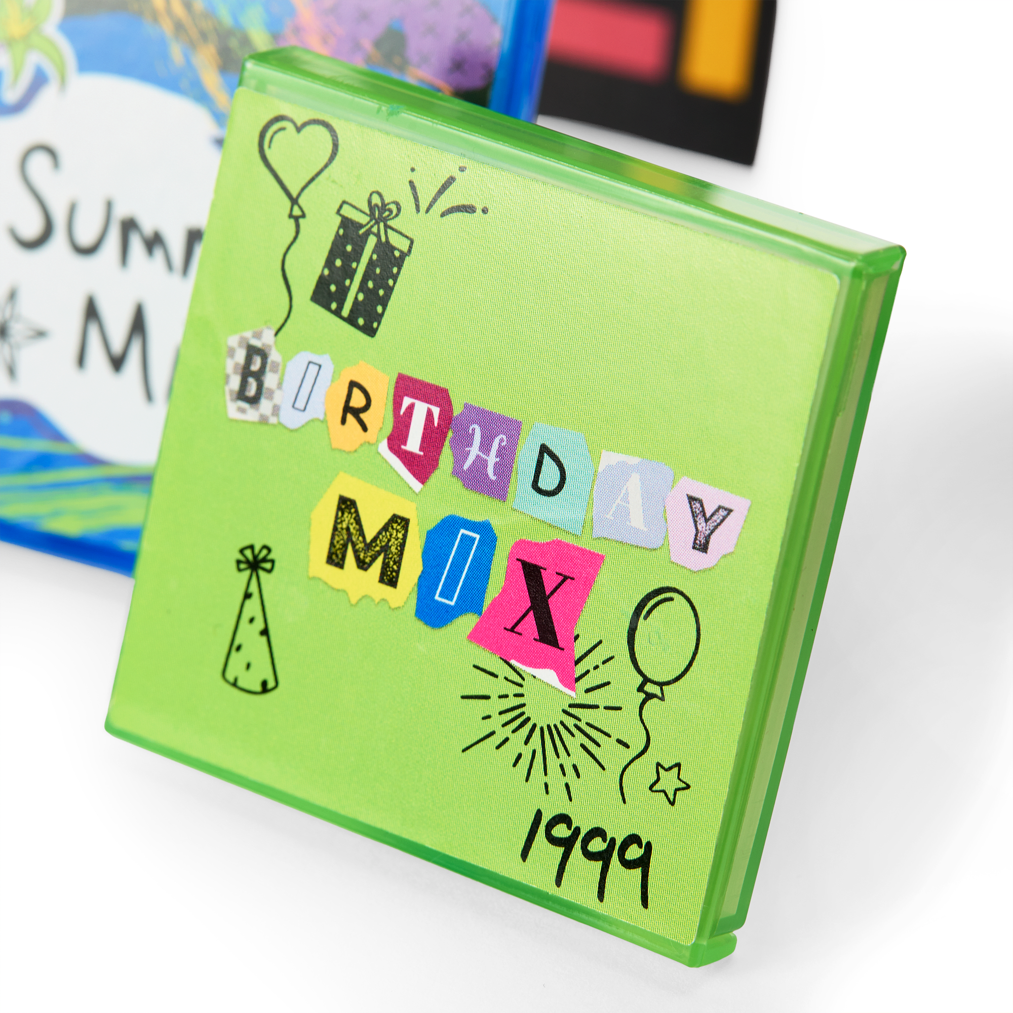 A pretend personal CD player that opens and closes, two pretend CDs that fit inside, two CD cases, and headphones that attach to the CD player that Nicki can wear