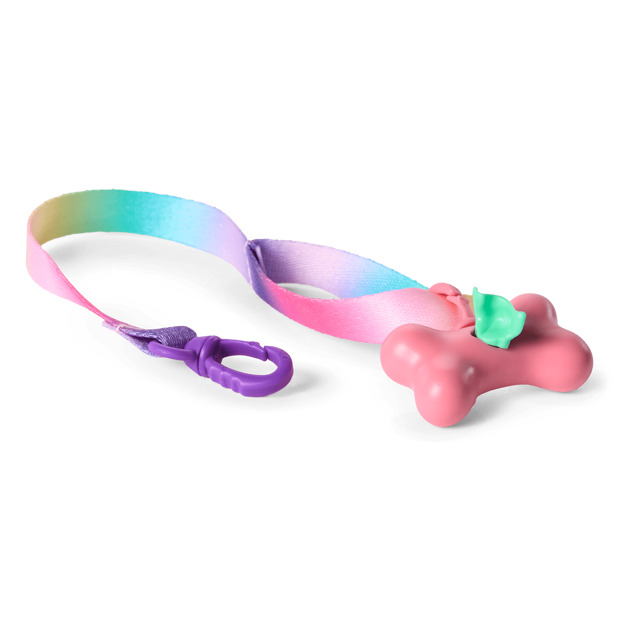 Summer’s Dog, Crescent: A soft, posable dog with white fur and a magnetic mouth to hold treats (sold separately), plus a rainbow faux-fur jacket, a rainbow collar with a heart charm, a leash with a loop that dolls can hold, and a poop bag holder